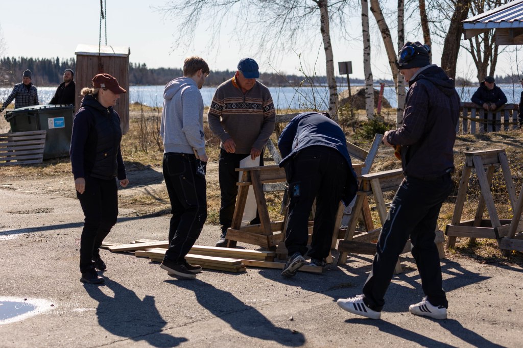 Rampen är klar! Snickarna beundrar sitt verk. Nu blir det lätt att dra återvinningskärlen upp och ned.Tankbryggan på plats! Tänk så lätt det är att tanka numera.Pizza-macka a la PVBK bakades i suveräna ugnen. GOTT GOTT!Gästhamnsskylten på plats.Nästan 5 knop med boj-stens-racern.Nya Y-bommar blir det!Stugan skyddas mot vind och sol. Målargänget planerar nästa penseldrag.Nya skyltar för bättre säkerhet på hamnplanen.Mums – snart klar!Stenkul har dom!Så här ska vi göra!Bättre utsikt blir det!Gästcyklarna trimmas!Vinterns skräp samlas upp av gänget som gjorde hamnplanen så fin.Nya fina bockar till mast-preppning!Y-boms-gänget passar in de nya bommarna.Värnen som ska skydda båtarna vid påmastningen sätts på plats.Bryggorna görs sommarklara med kransar och badstegar.