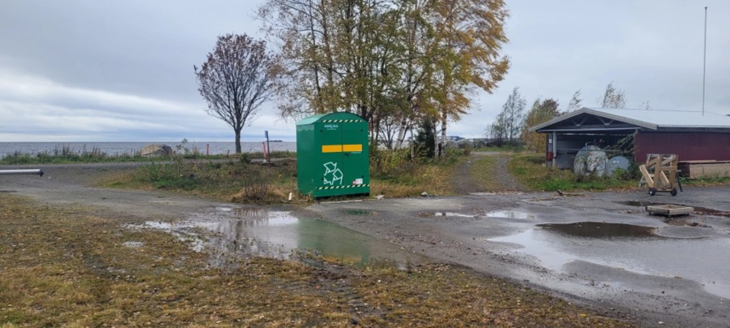 Gästande båtar kan lämna plåt, glas och plast i klubbens kärl på anvisad plats.
